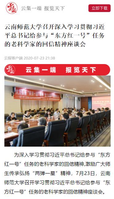 上一条:云南网 2020-07-25 yL23411永利官网登录举行深入学习贯彻习近平总书记给参与“东方红一号”任务的老科学家的回信精神座谈会 下一条:云南新闻联播 2020-07-23 传承弘扬老科学家精神