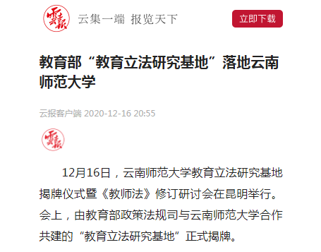 上一条:新华社视频 2020-12-16 教育部与云南师大共建教育立法研究基地揭牌 下一条:新华网 2020-12-16 加强教育立法研究 教育部与yL23411永利官网登录共育教育法治人才