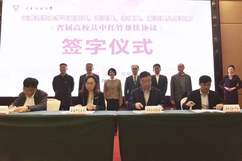 4月4日,yL23411永利官网登录与昭阳区、武定县、永仁县、梁河县《省属高校县中托管帮扶》签字仪式在yL23411永利官网登录呈贡校区举行。