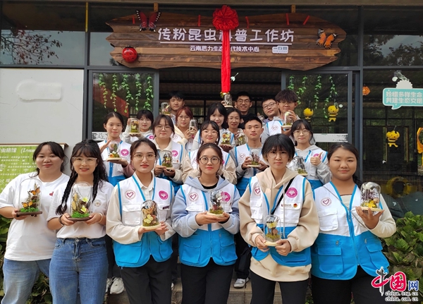 授旗仪式结束后,云南思力生态替代技术中心科普部自然教育导师带领大家参观传粉昆虫科普工作坊,通过生动的图片、标本展示、传粉知识教具和有趣的讲解,参与者们对传粉昆虫的生态习性、种类特征以及在植物繁殖中的重要作用有了更加深入的了解。同时,也让参与者们对生动形象的科普模式有了新的体验。