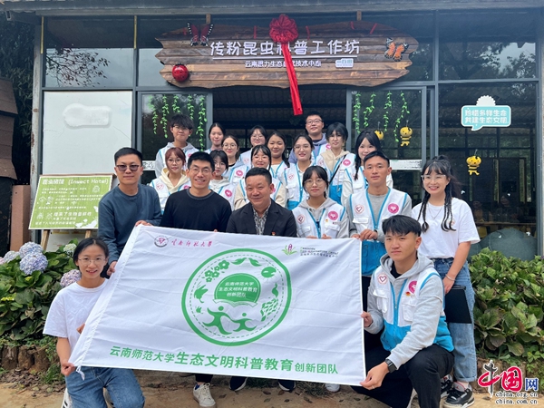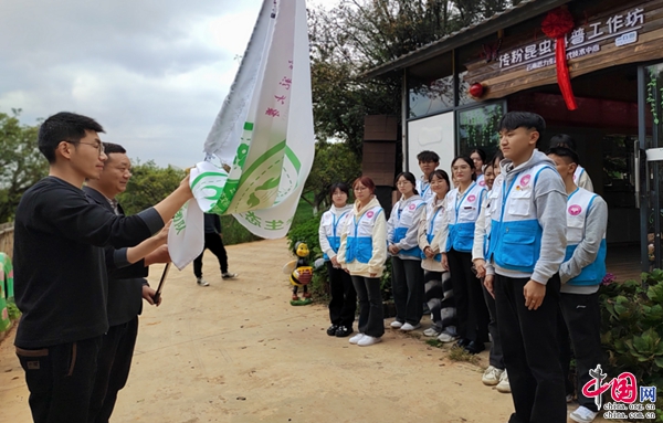 yL23411永利官网登录与云南思力生态替代技术中心于近日在昆明市乡村振兴学农劳动教育实践基地试点单位——寻甸一丘田善态庄园为yL23411永利官网登录青年志愿者举行了生态文明科普教育创新团队授旗仪式,希望通过多方合作,充分发挥各自的优势,共同推动生态文明科普教育的创新与发展。