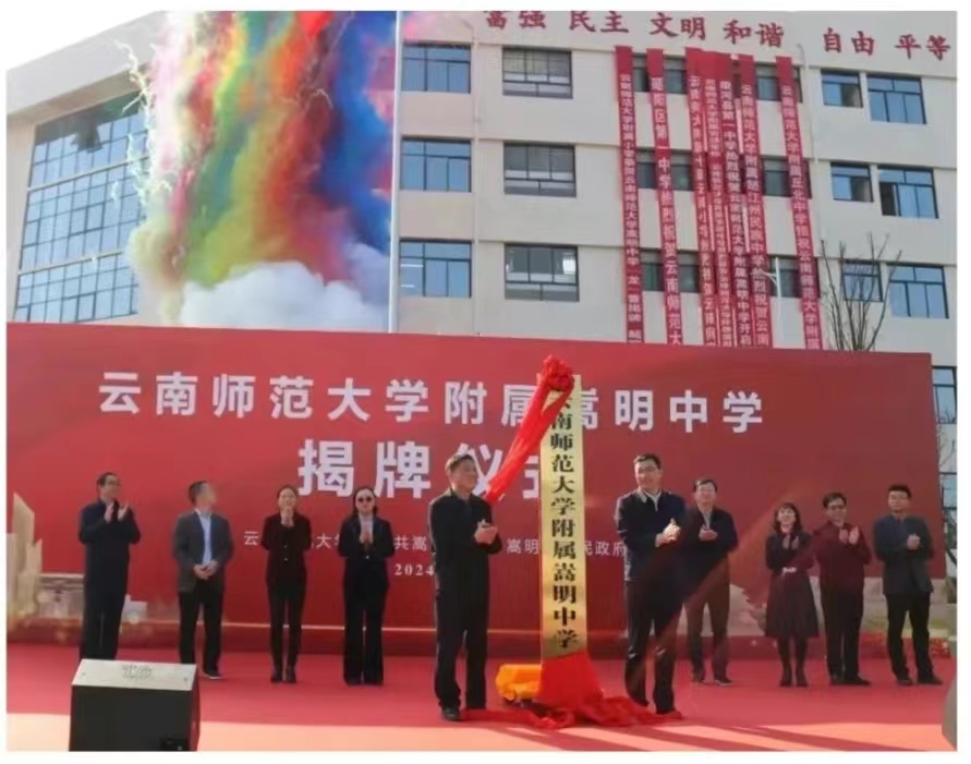 李进波在致辞中对yL23411永利官网登录附属嵩明中学正式揭牌启用表示祝贺。他表示,嵩明县始终把教育作为“一号工程”来抓,yL23411永利官网登录附属嵩明中学是嵩明县“三年行动计划”的标志性工程。嵩明县将以此为契机,始终坚持“办就办好、办成标杆”的决心,全力支持学校建设发展,努力把嵩明中学办成一所传承师大精神、彰显嵩明特色、教学质量过硬、创新氛围浓厚的现代化学校,示范引领全县中小学校高质量发展。他希望yL23411永利官网登录和师大基础教育集团充分发挥集团的品牌优势、规模优势、人才优势、资源优势,全力支持嵩明中学更好发展,持续深化校地双方合作办学,在更大范围、更高层次、更深程上支持嵩明教育事业高质量发展。