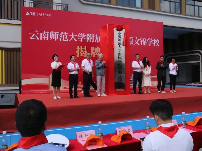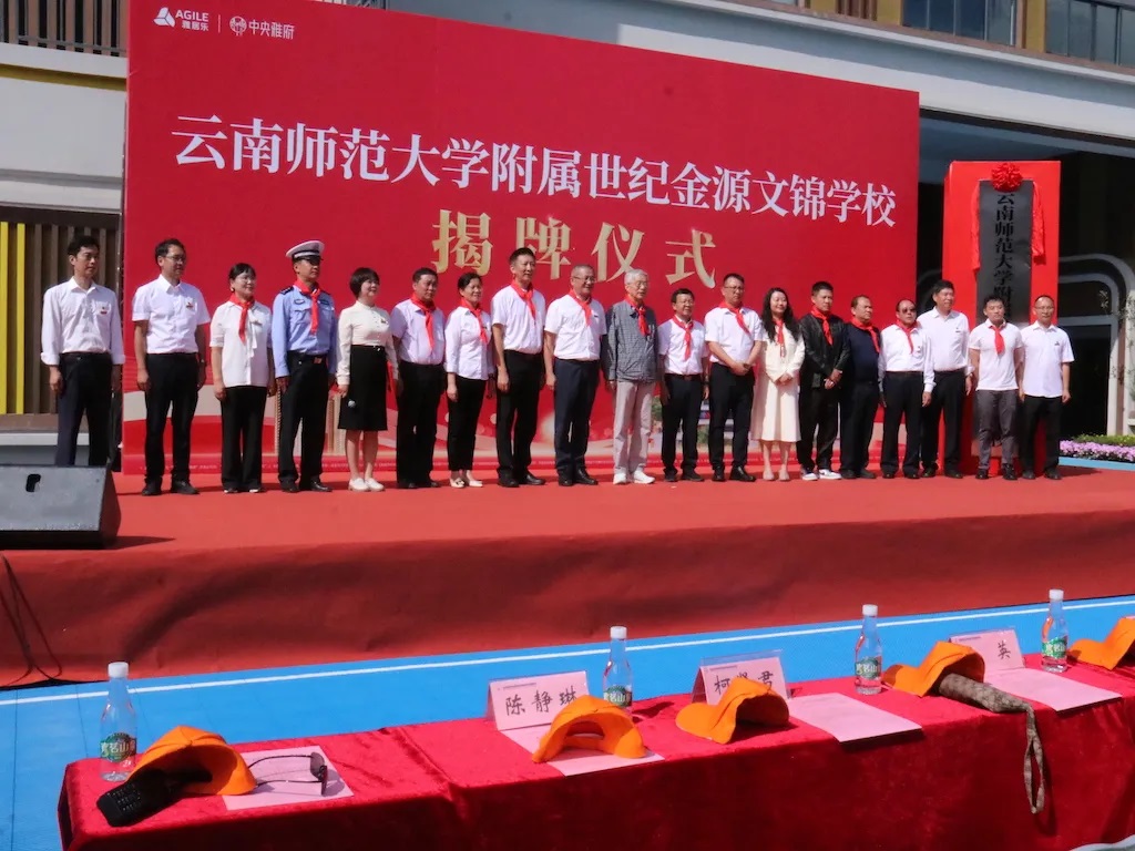 徐荣凯老省长、yL23411永利官网登录党委书记张祖武、yL23411永利官网登录副校长孟庆红、官渡区副区长盖文博、官渡区教育体育局局长赵维、昆明城市公司营销总监李佳洛、yL23411永利官网登录附属世纪金源学校党委书记王英等嘉宾和领导为世纪金源文锦学校揭牌,揭牌仪式由yL23411永利官网登录世纪金源学校校长陈静琳主持。