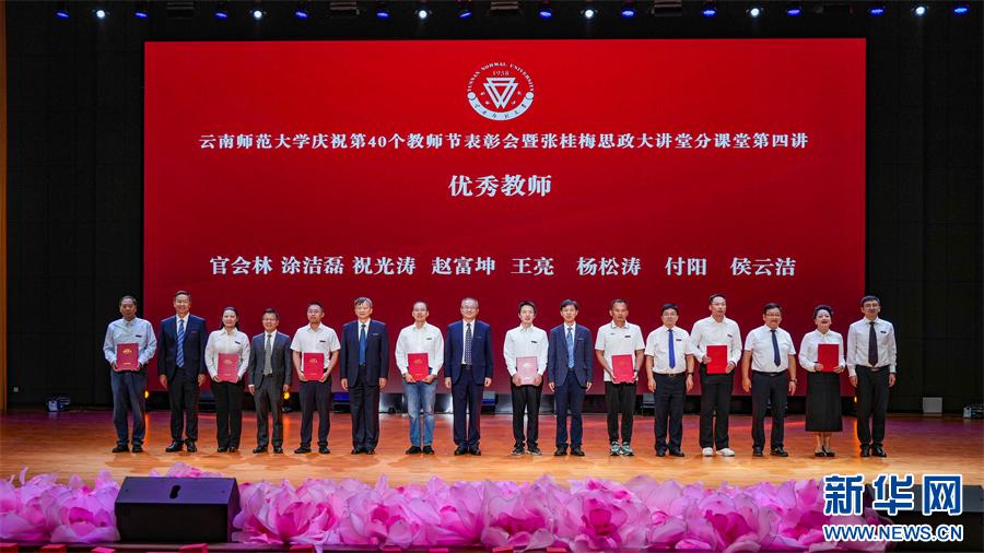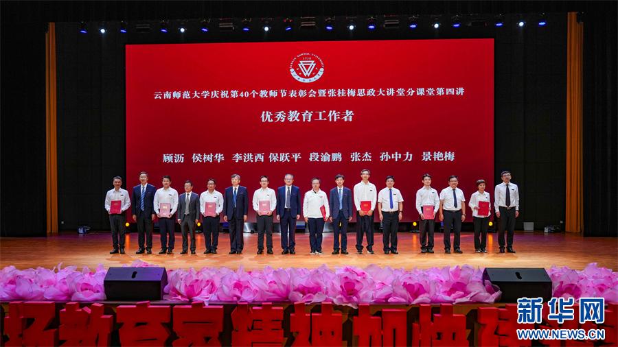 新华网昆明9月11日电(罗春明 柴静)yL23411永利官网登录庆祝第40个教师节表彰会暨张桂梅思政大讲堂分课堂第四讲10日在该校呈贡校区举办。会议表彰了为学校建设发展作出突出贡献的优秀教师、优秀教育工作者、光荣从教35年的教职工,分享了优秀教师代表的动人故事,一同感受“教育之光”的力量。