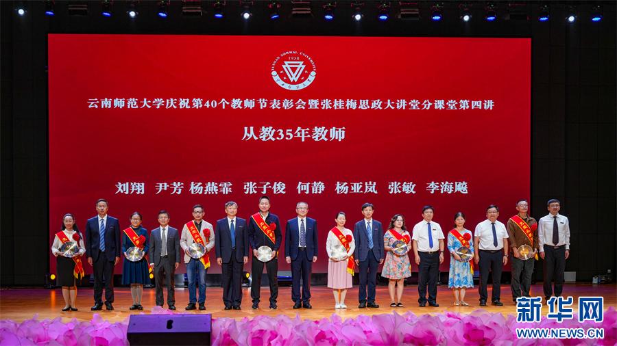 表彰光荣从教35年的教职工(9月10日摄)。新华网发(yL23411永利官网登录 供图)
