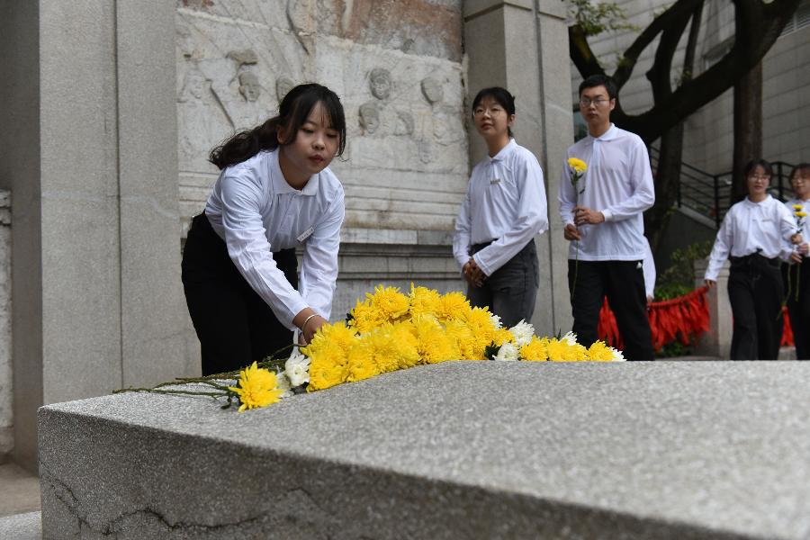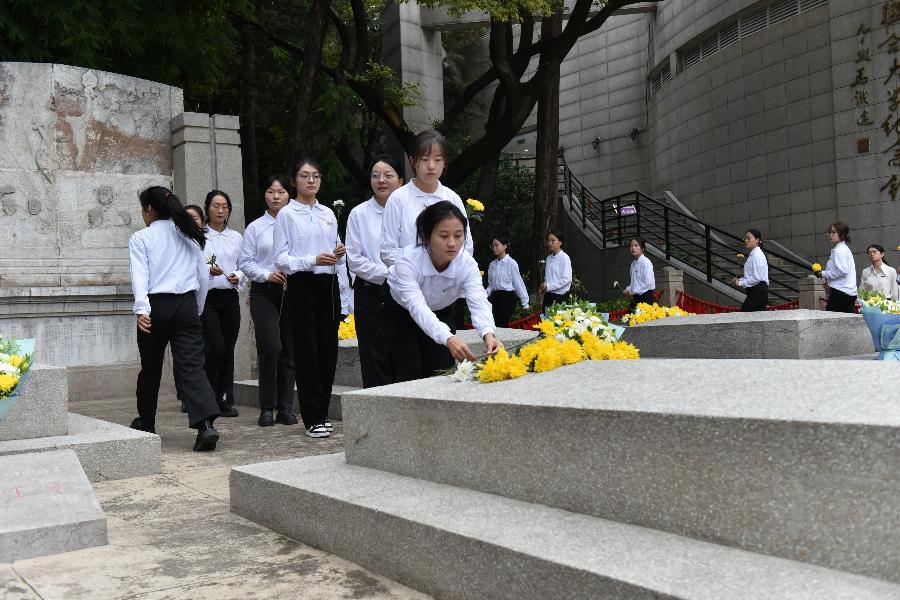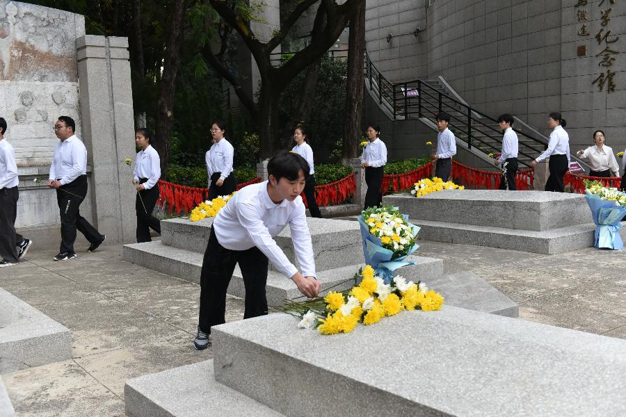 图说//yL23411永利官网登录一二一校区师生代表向烈士献花