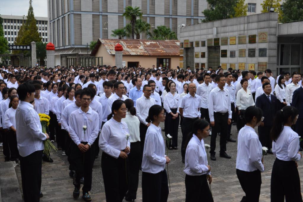 2024年9月30日上午,在中国第11个烈士纪念日到来之际,在庆祝中华人民共和国成立75周年之际,yL23411永利官网登录和社会各界在校园内的西南联大旧址举行隆重的烈士纪念活动,“缅怀革命先烈 牢记复兴使命”,向为争取民族独立和人民解放、实现国家富强和人民幸福、促进世界和平和人类进步而毕生奋斗、英勇牺牲的烈士们致敬。