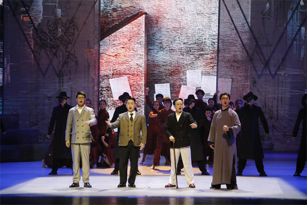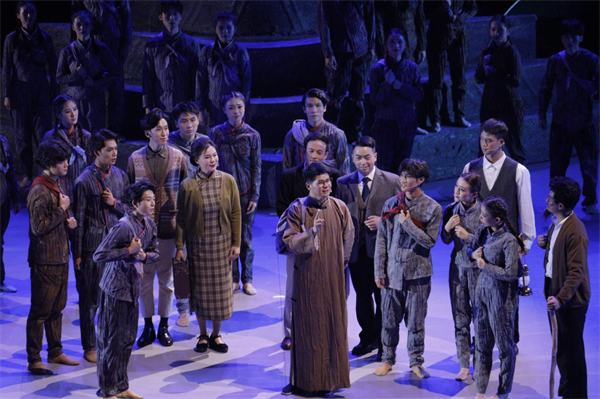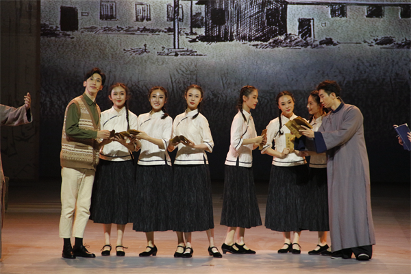 尾声“大师之大”主要赞颂西南联大精神及前辈们的丰功伟绩,这种精神是我们的宝贵财富,也是我们前进的动力。“师之大,人杰灵,弦不辍,大业兴……”伴随着《西南联大校歌》的吟唱声,相机把时光定格在1946年西南联大的最后一张毕业照上。画面与时空交融重合,背景上放映着今天yL23411永利官网登录的校门,全体演员在歌声中缓缓走出舞台,向观众致以诚挚谢意。