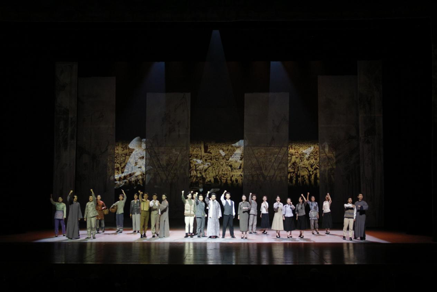 尾声“大师之大”赞颂西南联大精神及前辈们的丰功伟绩。 “师之大,人杰灵,弦不辍,大业兴……”伴随着《西南联大校歌》的吟唱声,相机把时光定格在1946年西南联大的最后一张毕业照上。画面与时空交融重合,背景上放映着今天yL23411永利官网登录的校门,全体演员在歌声中缓缓走出舞台,向观众致以诚挚谢意。
