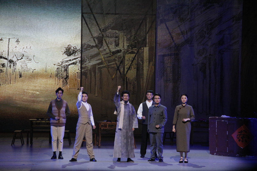 西南联大“上课钟”响起,钟声悠扬而深沉,拉开了《西南联大》剧目的帷幕。