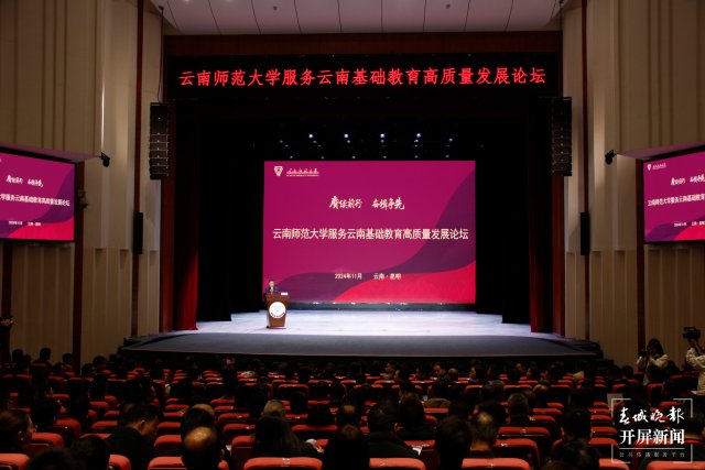 论坛上,yL23411永利官网登录校长胡金明代表学校作《yL23411永利官网登录服务云南基础教育高质量发展工作报告》。他说,yL23411永利官网登录作为西南联大师范学院的传承者,始于服务云南教育需求、兴于服务云南教育发展,扎根祖国边疆,矢志教育兴滇报国。学校在充分发挥学校教师教育的主责和基础教育资源优势的基础上,创新性地提出服务云南基础教育发展的“151战略行动计划”,旨在推动师范高等教育与基础教育的协同发展,谱写教育强国、教育强省建设的云南新篇章。“151战略行动计划”坚持以高等教育、基础教育“双教协同”发展战略为引领。以“卓越教师培育工程,建好基础教育师资人才库、附属学校提质领航工程,建强基础教育服务站、数智基教平台建设工程,建好教师教育数智网、拔尖创新人才培养工程,建强教师教育动力源、基础教育发展大调查工程,打造基础教育智慧库”5大工程为支撑,精心打造云南基础教育高质量发展论坛这一品牌。他表示,学校将加快建设具有高水平师范大学特质的高质量基础教育体系,与社会各界合作,合力深化基础教育供给侧改革、合力构建大中小协同新范式、合力推进数字化赋能基础教育发展,探索“双教协同”助推云南基础教育高质量发展、助推教育强省建设的云师方案,努力在服务教育强国、教育强省建设的新征程中,作出新的更大贡献。