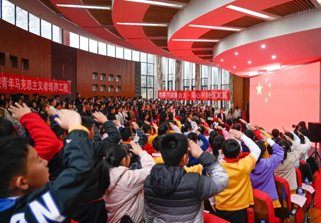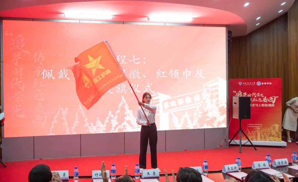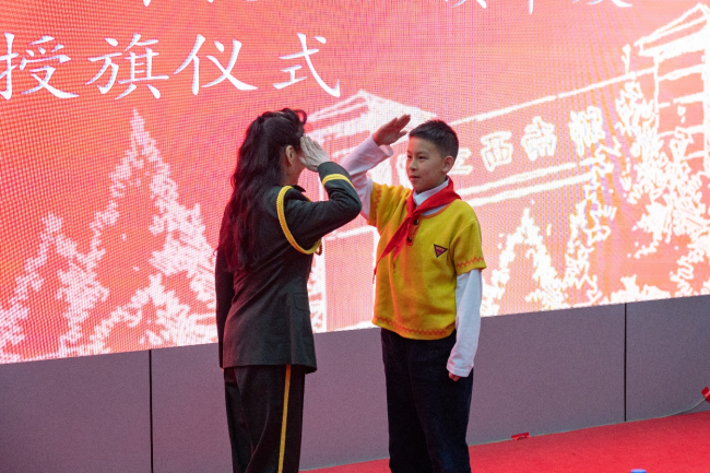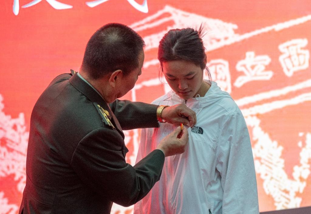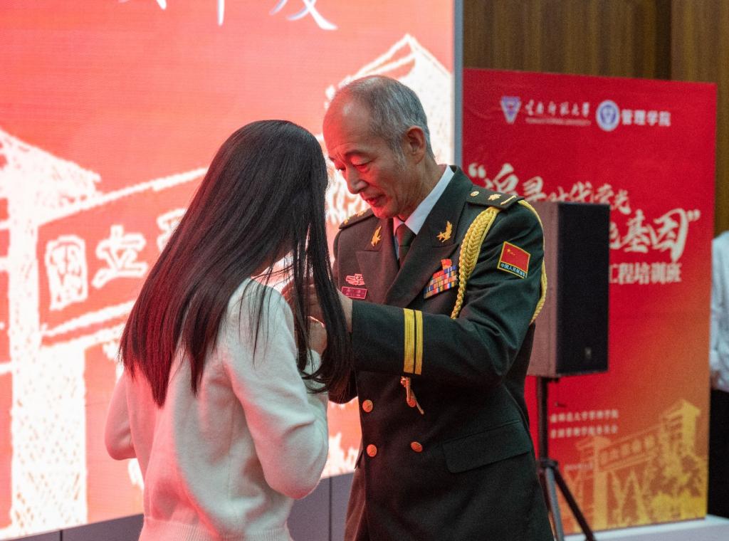 同时,军休干部为党团员代表、少先队代表分别佩戴党员徽章、团徽、红领巾,并授予青马工程旗帜。