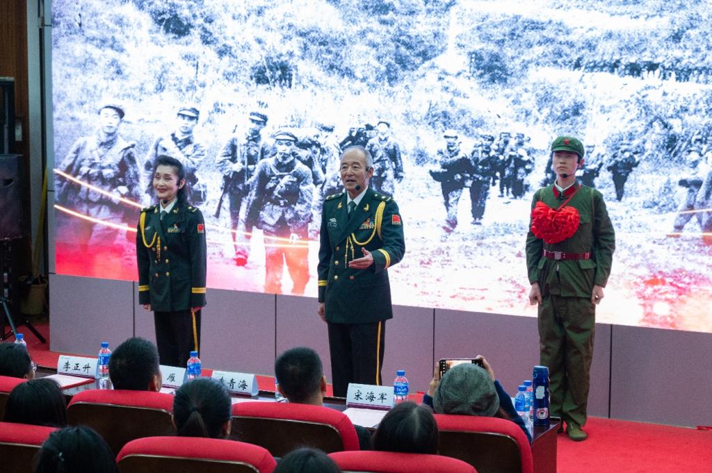 云南省退役军人事务厅军休干部给现场师生代表上了《永远的丰碑》思政课。《永远的丰碑》以1979年一名在云南参战为国捐躯的烈士王节军事迹为主线,通过对1975年王节军参军入伍,1979年作战英勇牺牲,2018年其亲人和参战老兵到烈士陵园祭扫,跨越三个时空的经历讲述和演绎,展现了那些为国家、为民族英勇献身的英雄光辉形象。