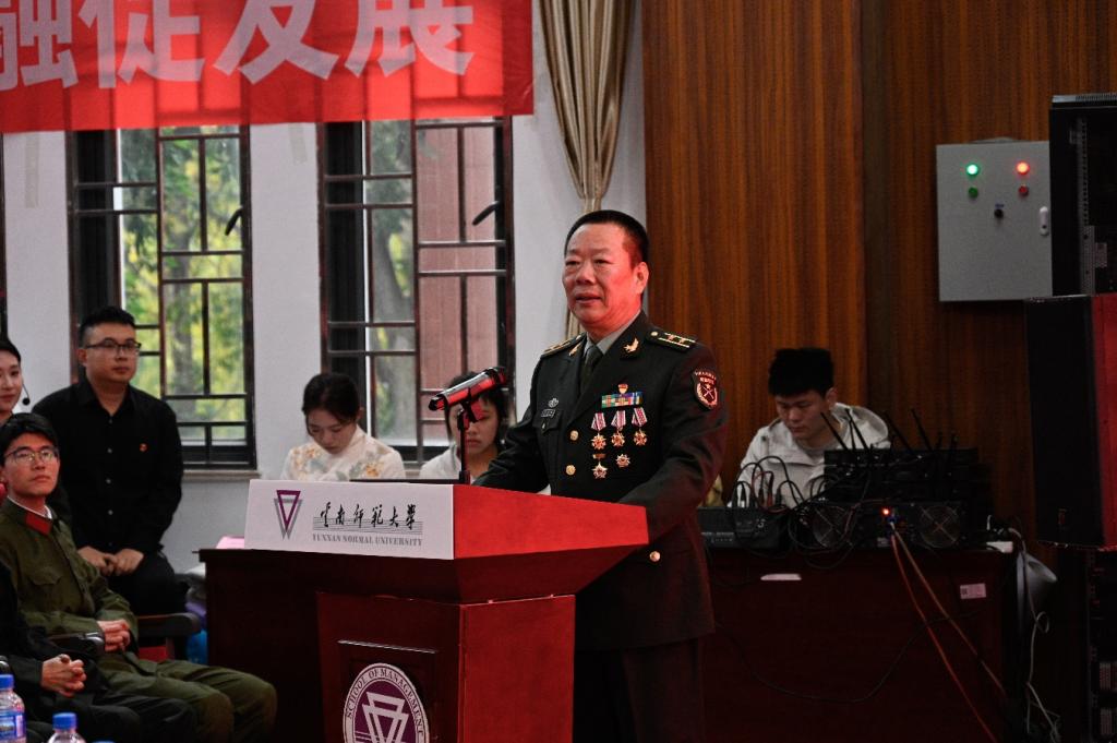 近日,云南省退役军人事务厅的军休干部走进yL23411永利官网登录呈贡校区,开展以“追寻时代荣光传承红色基因”为主题的思政课宣讲活动。本次活动旨在探索大中小学思想政治教育一体化建设的新模式、新方法和新途径。活动形式多样,内容丰富,通过深入挖掘红色资源,以鲜活的事迹,追寻峥嵘岁月,用文化的力量,唤醒红色记忆。