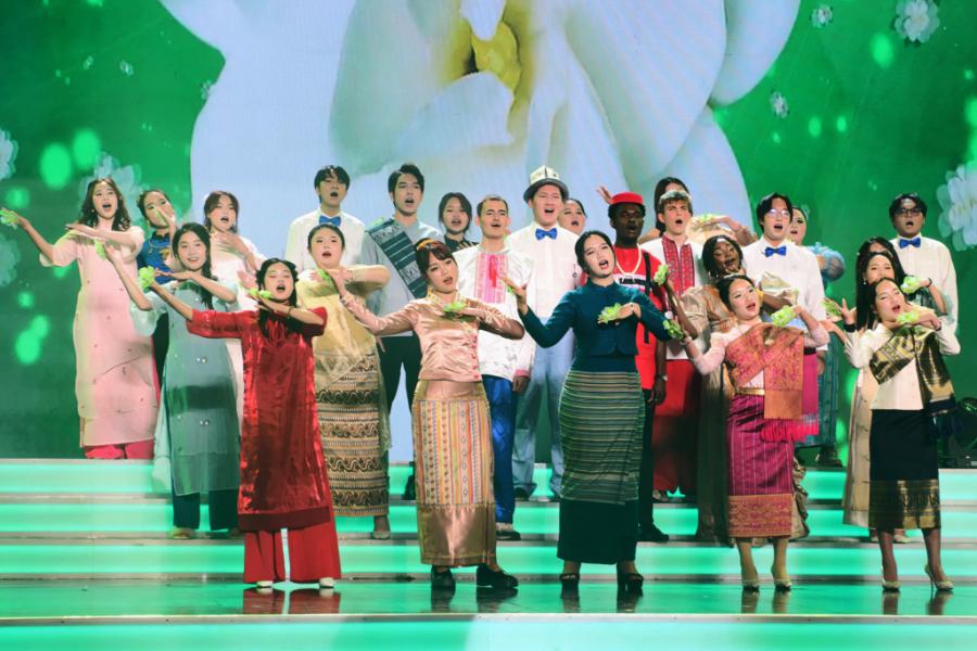 在第三篇章《筑梦·四海放歌》中,yL23411永利官网登录“和声国际”合唱团演唱了《茉莉花》,这支合唱团成立于今年10月,由12个国家的60余名中外学生组成;《“一带一路”·歌舞相和》舞蹈表演,讲述了36名留学生的故事;舞蹈《风·雅·韵》,通过艺术的形式,带领观众一同领略诗词歌赋里的国风雅致,品味中国文化的博大精深。